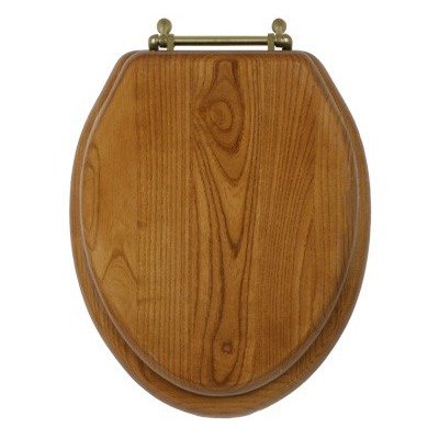 Save Price Magnolia Oak Elongated Toilet Seat with Brass Hinge