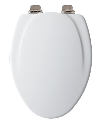 Low Price Mayfair 130NISL 000 Designer Series Wood Toilet Seat with Brushed-Nickel Whisper-Close Hinges, Elongated, White